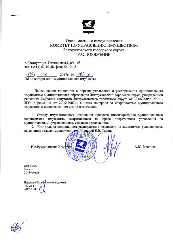 Распоряжение № 198-р от 09.03.2017г.