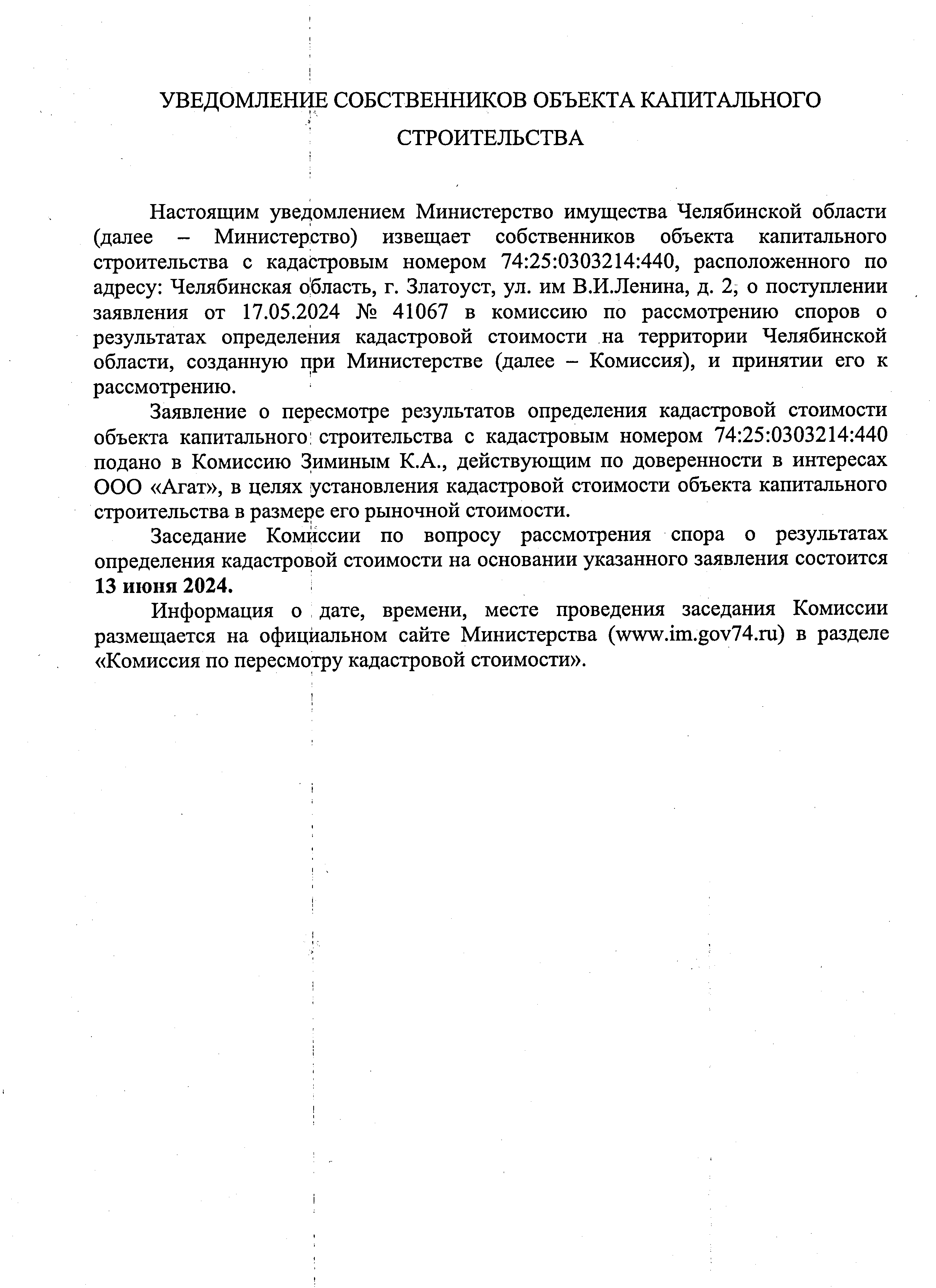 Уведомление собственников капитального строительства