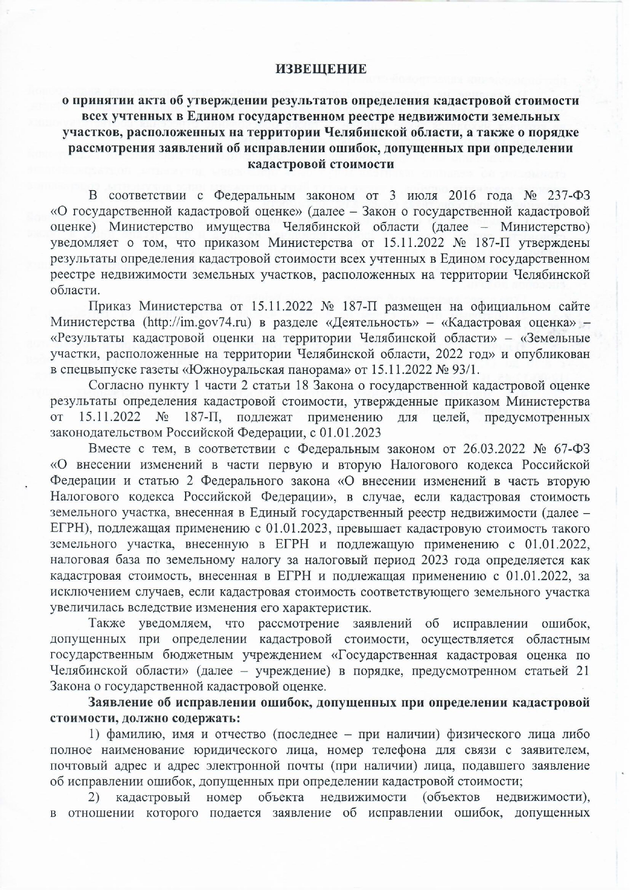 ВНИМАНИЕ ГРАЖДАН! НОВАЯ КАДАСТРОВАЯ СТОИМОСТЬ ЗЕМЕЛЬНЫХ УЧАСТКОВ!