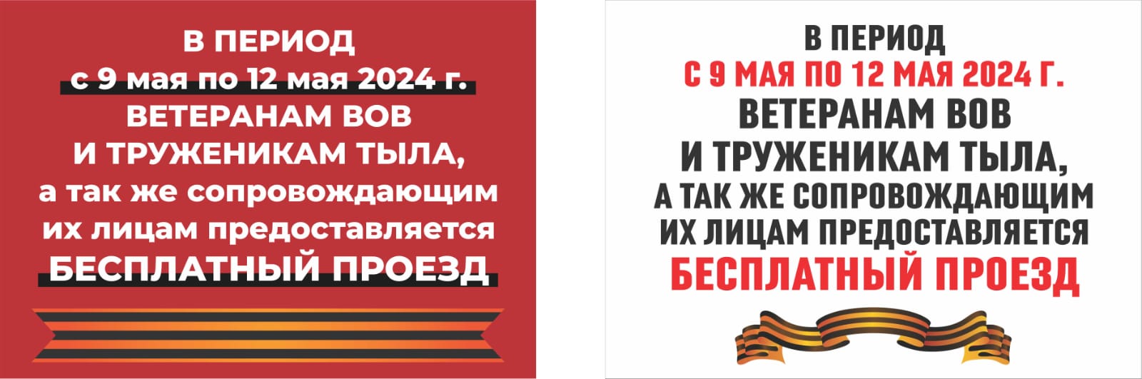 С 9 по 12 мая на маршрутах 17, 28, 30 (ИП Терентьев А.С.) будет организован бесплатный проезд для ветеранов Великой Отечественной войны, тружеников тыла и лиц, их сопровождающих.